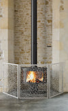 Une tôle pare-étincelles comme sécurité pour votre cheminée et/ou votre poêle. Pare-feu droit en acier brossé, 3 volets, largeur centrale 70 cm, deux volets articulés de 25 cm, hauteur 60 cm.